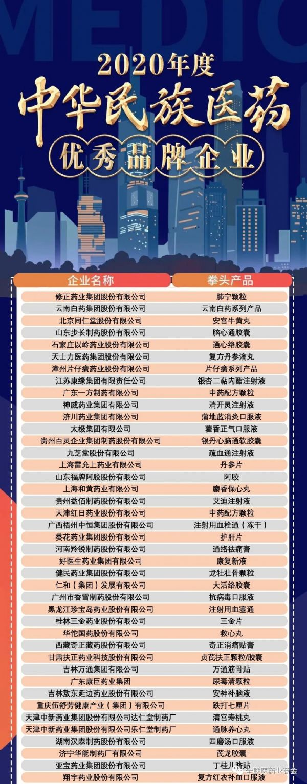 熱烈祝賀普安制藥宣肺止嗽合劑進(jìn)入2020年度中華民族醫(yī)藥優(yōu)秀品牌企業(yè)榜單!